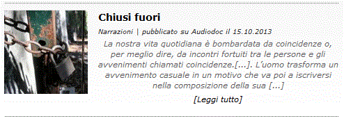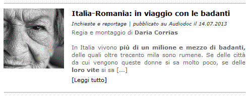 Sul sito di Audiodoc si possono ascoltare e scaricare molti ottimi esempi di giornalismo radiofonico, approfondimenti sociali e storici realizzati con grande cura e attenzione. Tutto questo nonostante le notevoli difficoltà economiche di un settore che sembra non avere un vero e proprio “mercatoâ€, ma che registra comunque una crescente attenzione da parte del pubblico affascinato da quel gesto semplice eppure così impegnativo che è l’ascoltare.